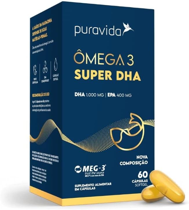 O Ômega 3 Super DHA Puravida é elaboradocom óleo de peixe e contém elevadaconcentração de DHA. Formulado comcom tecnologia avançada e matéria-prima deprocedência rastreável, possui selo de qualidadeMEG-3®, que reconhece o fornecimento